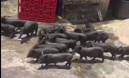 广州合农公司代表在广西参观国伟黑猪苗入栏情景