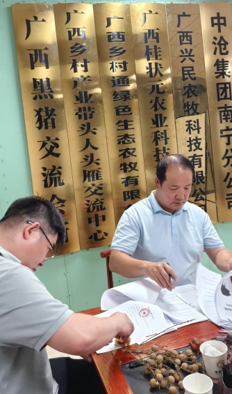 中沧集团、广西兴民、广州合农三家公司负责人从下午到晚上详细沟通了黑猪全产业链合作发展各项内容,大家非常重视这次的资源优势互补的合作,对每一项合作内容都认真审核,思考敲定,一直到8月13日凌晨1点30分,正式签定合作合同。