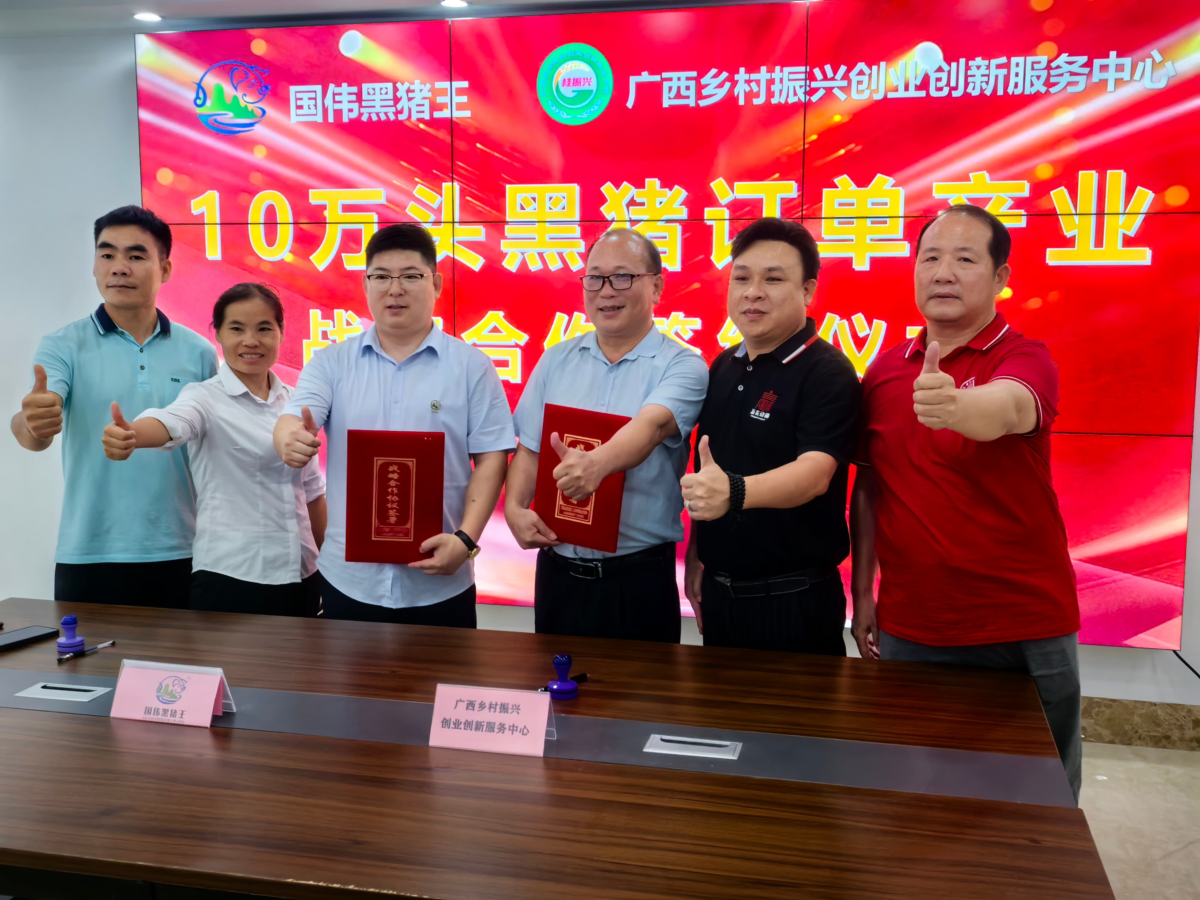 国伟黑猪代养仅发展半年多,280斤以上的黑猪尚未出栏,就有多家大型需求方来与公司签订采购协议,自之前有两家大采购商签订10万头以上采购协议后,又有广西乡村振兴创业创新服务中心签署了10万头黑猪的产业订单,代养户养的黑猪就是这样通过大订单走向市场终端,让农户养出来的黑猪有明确的市场需求出路,农户敢养!放心养!但现在的产能远未满足现在合约的需求量。
