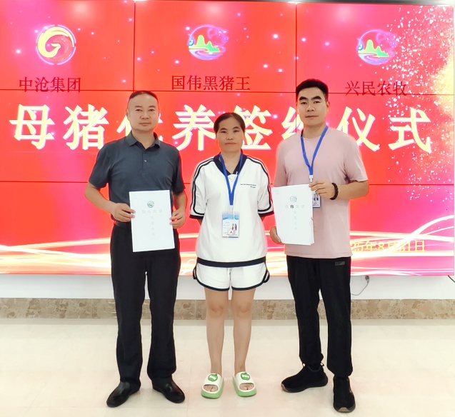 3、国伟黑猪王科技河南办事处在国庆这一天签订4000头代养国伟黑猪,地点河南驻马店西平县