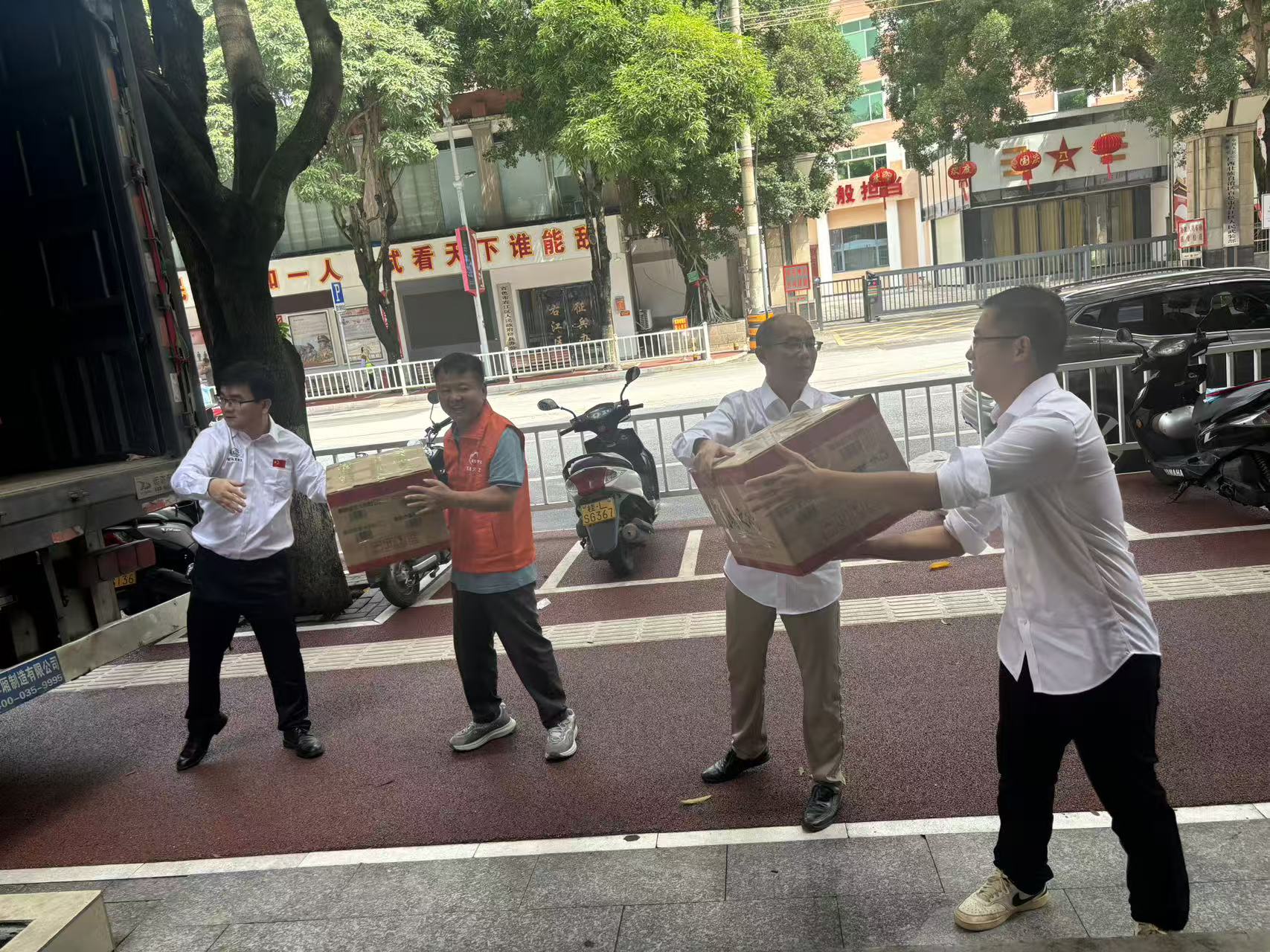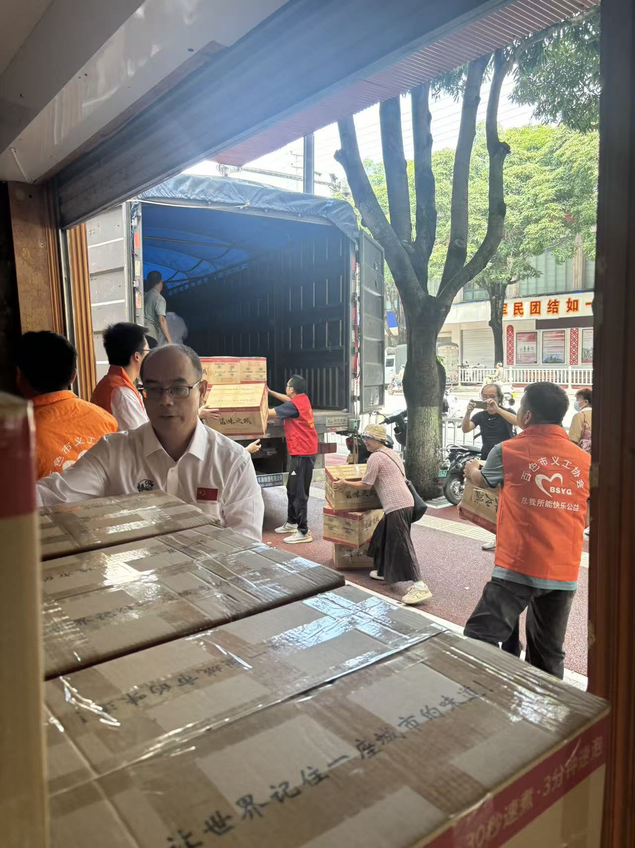 活动当天,不仅有百色市义工协会的志愿者踊跃参与,右江区工商联的志愿者也迅速到场,加入卸运队伍。