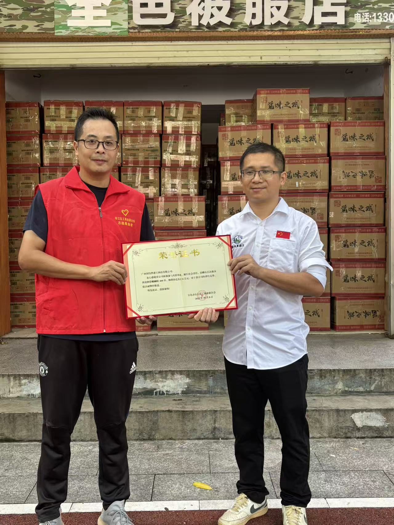 近日,受台风“博罗依”影响,广西多地遭遇持续强降雨,崇左、百色、南宁等市部分地区遭受洪涝灾害-2。危难时刻,广西国伟黑猪王科技有限公司迅速行动,履行企业社会责任,向灾区捐赠包括即食螺蛳粉在内的急需物资,用于支援受灾群众和一线救灾人员。