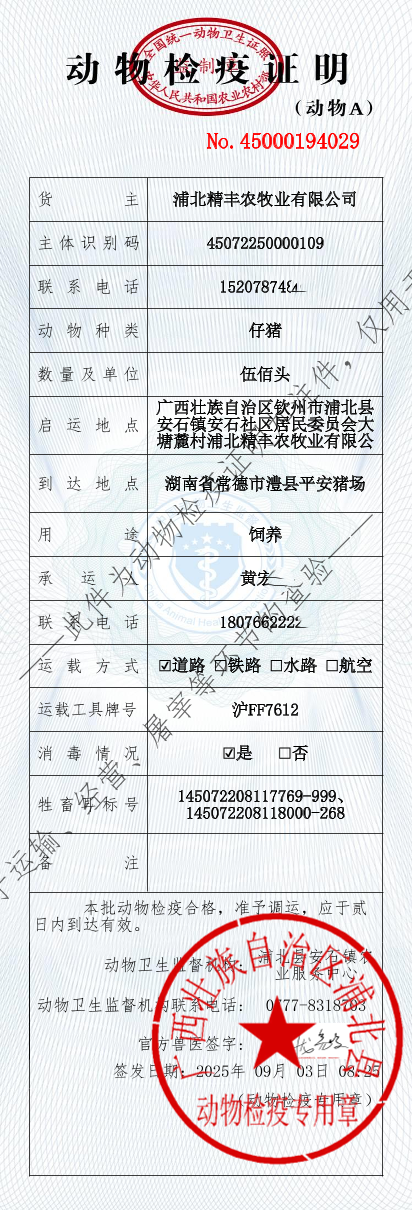 2025年9月3日黑猪苗发向湖南常德